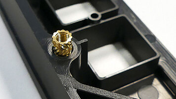 For the producers, manually inserting 18 brass female connectors into a plastic frame for a control unit was a laborious and costly process. Ultrasonic welding offered an efficient alternative which considerably shortened the cycle times and was also financially worthwhile – in spite of a low unit count. The versatility of the sonotrode and Herrmann Engineering played a crucial role here.